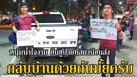แห่ชื่นชม!!! หนุ่มน้ำใจงาม ยืนชูป้ายที่สถานีขนส่ง "ร่วมทางกลับขอนแก่น" ฟรีครับ