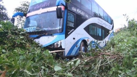 ระทึก รถบัสหาดใหญ่-ภูเก็ต พุ่งลงข้างทาง ผู้โดยสาร 20 ชีวิตรอดหวุดหวิด