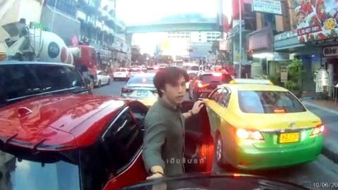 เกิดเรื่องกลางถนน เจ้าของเก๋งรีบลงมาดู อู้หูวววหล่อจัง (ชมคลิป)