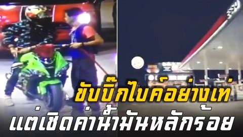 เด็กปั้มเซ็ง!!! หนุ่มบิ๊กไบค์อย่างเท่ห์ขับเติมน้ำมัน ก่อนบึ่งหายจ้อยเชิดจ่ายแค่หลักร้อย