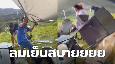 หนุ่มไปจุดกางเต็นท์ บอกอากาศดี ลมพัดเย็นสบาย