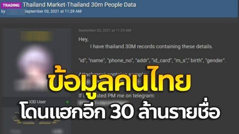 หลุดอีก! ข้อมูลคนไทย 30 ล้านคน โผล่ขายตลาดมืด