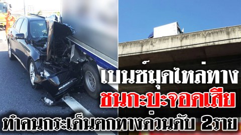 เบนซ์หรู มุดไหล่ทางชนท้าย รถขนของที่จอดเสียอยู่ข้างทาง