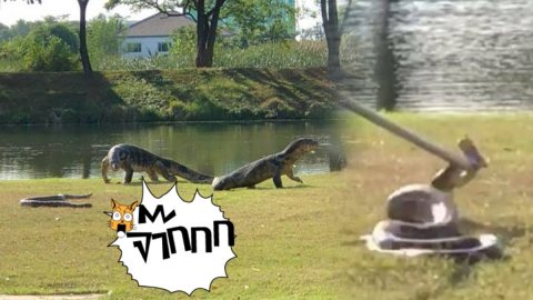 ศึกใหญ่ฟัดใหญ่!!! งูเหลือมปะทะ2ตัวเงินตัวทองตัวยักษ์กลางม.มหิดล