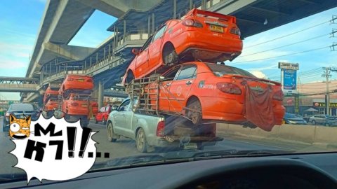แบบนี้ก็ได้!!! โซเชียลจวกยับ "รถกระแบกขนแท็กซี่" อันตรายรถคนอื่น