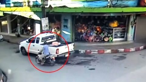 "รถขนเงิน" ชนท้าย "รถจักรยานยนต์" กลางสี่แยก ป้อมอยู่ใกล้ๆ แต่ไร้เงาตำรวจ