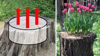 ไอเดียสุดเจ๋ง เปลี่ยนตอไม้หน้าบ้านเป็นพุ่มดอกไม้หลากสี