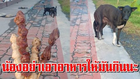 สาวเจอหมาแม่ลูกอ่อนตัวผอมโซ เดินไปซื้ออาหารให้กินกลับถูกผู้คนบอกอย่าให้หมามันกินนะ