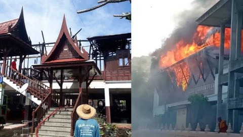 ไฟไหม้กุฏิไม้สัก "วัดโพธาราม" วอดทั้งหลัง ขอร่วมบูรณะซ่อมแซม