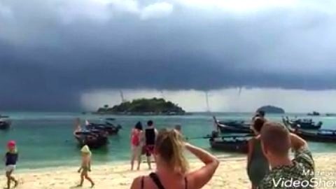 สะพรึง!! พายุงวงช้างหลายลูก กลางทะเลเกาะหลีเป๊ะ จ.สตูล