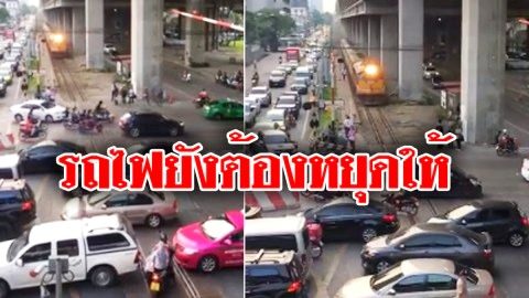 มักง่ายสุดๆ! ขับรถไม่สนใจโลก ขนาดรถไฟยังต้องหยุดให้