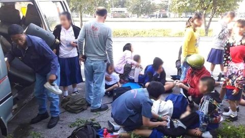 ระทึกขวัญเช้านี้!!! รถตู้รับส่งนักเรียนพุ่งชนเสาไฟ เด็กกว่า 20 ชีวิตเจ็บระนาว