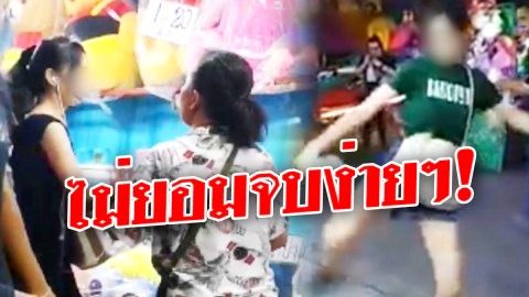 ไม่ยอมจบง่ายๆ!!! "ลูกค้าสาว" ถูกผลักกระเด็นกลางงาน กลับมาเอาคืนร้านแม่ค้าปาเป้าเตะปากแม่ค้าคู่กรณี