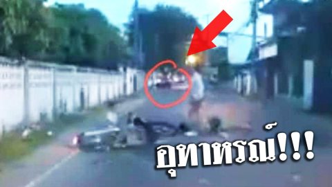 อุทาหรณ์!!! เก๋งพุ่งชนจยย. ทางโค้งเขตชุมชน