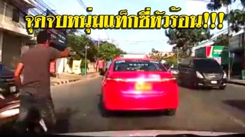จุดจบหนุ่มแท็กซี่หัวร้อน!!! ซิ่งไล่ จยย. สุดท้ายเจ็บจริงไม่ใช้ตัวแสดงแทน