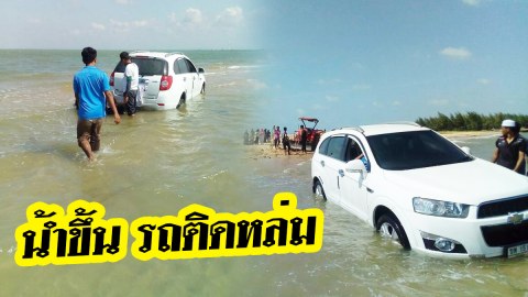 "เก๋งหรู" ติดหล่มทรายนานกว่า 3 ชั่วโมง ลั่น!!! ตอนลงมาน้ำยังไม่ขึ้น