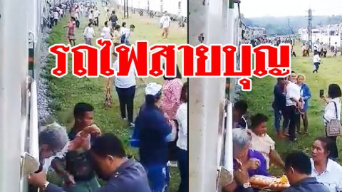 "รถไฟสายบุญ" จอดส่งชาวบ้านร่วมงานทอดกฐิน ที่วัดธาตุน้อย
