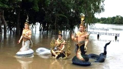 หนุ่มสงสัย ได้3ตัว น้ำท่วมรูปปั้น พ่อปู่แม่ย่า