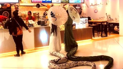พบ ‘นางพญางูขาว-งูเขียว’ ต่อคิวซื้อไอศกรีมกลางกรุงปักกิ่ง
