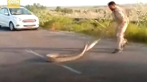ระทึก! ตร.อินเดียหวิดถูก "งูยักษ์" พุ่งฉก ขณะช่วยชีวิตมันจากชาวบ้าน