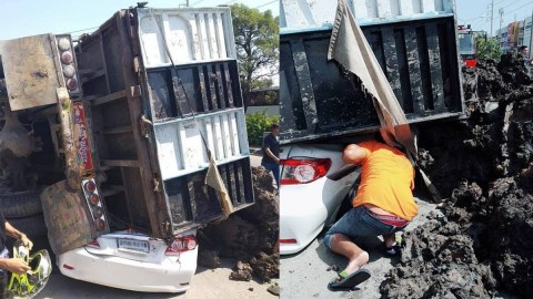 อุบัติเหตุ!!รถบรรทุก 10 ล้อ บรรทุกดินทับรถยนต์นั่งส่วนบุคคล