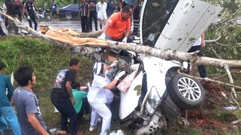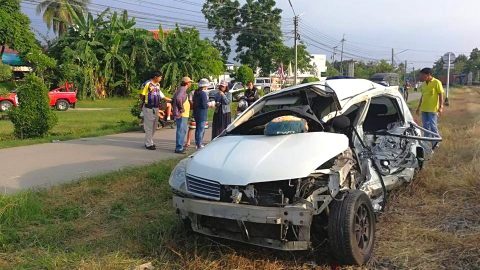 เก๋ง เสียหลักพุ่งชนต้นไม้ เจ็บระนาว!!
