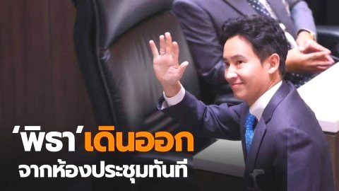 "พิธา" เดินออกจากห้องประชุม หลังศาลสั่ง หยุดทำหน้าที่ จากปมถือหุ้น บมจ. ไอทีวี