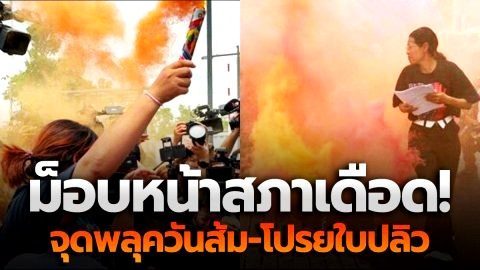 ม็อบหน้าสภาเดือด! จุดพลุควันส้ม-โปรยใบปลิว ตำรวจประกาศเตือนมวลชน