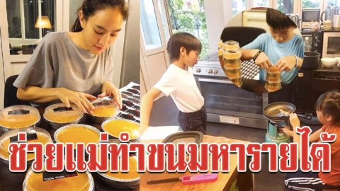 ลูกกตัญญู “น้องเเพรว-น้องภูมิ” ช่วย “เเม่ตุ๊ก ชนกวนันท์” ทำขนมหารายได้