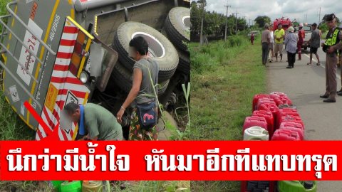 รถขนน้ำมันคว่ำ ชาวบ้านแห่วิ่งช่วยนึกว่ามีน้ำใจ หันมาอีกทีแทบทรุด