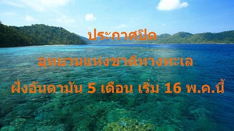 16 พ.ค.นี้ ปิดอุทยานแห่งชาติทางทะเล ฝั่งอันดามัน 5 เดือน เปิดทางธรรมชาติฟื้นตัว