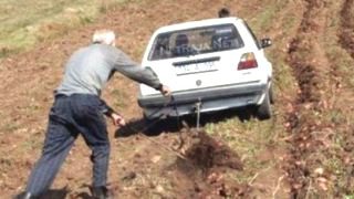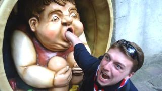ท่าเจ๋งๆ..คนเล่นกับรูปปั้น