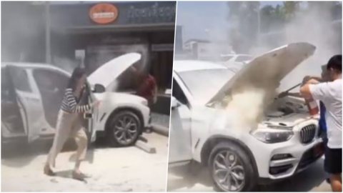 ระทึกกลางปั๊ม ไฟไหม้ BMW ป้ายแดง มีเด็กอ่อนอยู่ในรถ โชคดีเด็กปั๊ม-พลเมืองดีช่วยทัน (คลิป)