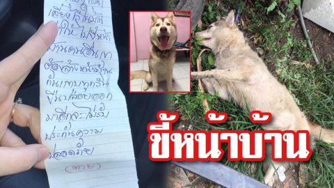 สุนัขพันธุ์ไซบีเรียนวัย 7 เดือน ตายปริศนา พร้อมจดหมายขู่ฆ่า เหตุไม่พอใจ หมาขี้หน้าบ้าน