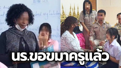 ขอโทษแล้ว! "นักเรียนหญิง" ชูนิ้วกลาง-ทำท่าจะต่อย-บูลลี่ "ครูต่างชาติ" เข้ากราบมอบพวงมาลัย