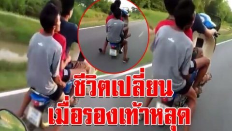 โจ๋ซิ่งมอร์ไซค์ โชว์สเต็ปยกล้อ แต่คนถ่วงรองเท้าหลุด ทำชีวิตเปลี่ยนทั้งคัน (คลิป)