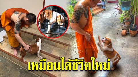 บูลล์ด็อกถูกเจ้าของทิ้ง เพราะเดินไม่ได้ หลวงพี่จึงชุบเลี้ยง เหมือนได้ชีวิตใหม่