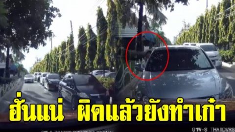 เก๋งสุดกร่าง ขับแซงย้อนศรไม่พอ ยังไล่คันอื่นให้หลีกทาง ทั้งที่มาถูกต้อง (คลิป)