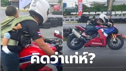 ทำไปได้!! พ่อแม่รังแกฉัน พ่อเอาลูกน้อยกะเตงหลังแข่งรถ