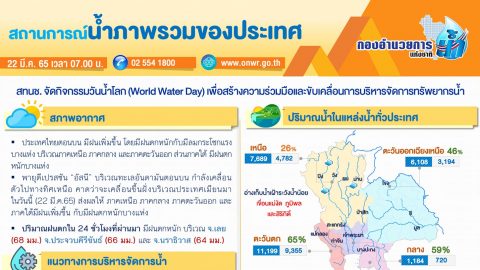 สรุปสถานการณ์น้ำภาพรวมของประเทศ วันที่ 22 มี.ค. 65