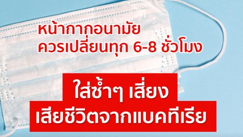 หน้ากากอนามัยควรเปลี่ยนทุก 6-8 ชั่วโมง ใส่ซ้ำๆ เสี่ยงเสียชีวิตจากแบคทีเรียที่สะสม