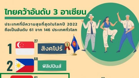 ไทยติดอันดับ 3 มีความสุขที่สุดในโลก ปี 2565 ในอาเซียน
