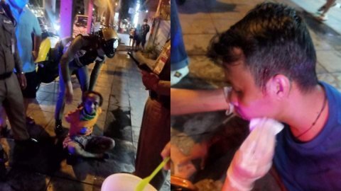 หนุ่มดวงซวย!! ยืนซื้อข้าวอยู่ดีๆ เจอชายสติไม่ดี คว้างหินปาใส่หัว