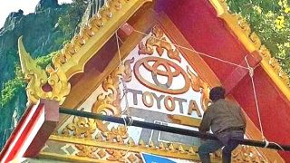 รื้อทิ้งแล้ว-หน้าบันติดโลโก้โตโยต้า ที่แท้เป็นสุสานเก็บศพ ปลูกอยู่ข้างวัดที่ลพบุรี