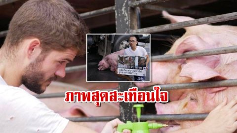 ภาพสุดสะเทือนใจ! กลุ่มช่วยเหลือสัตว์ในกรุงเทพฯ รวมตัวกันไปยืนขวางทาง “รถขนหมู” ขณะกำลังขับไปโรงเชือด