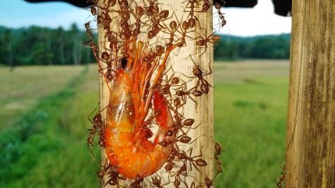 ชาวเน็ตแห่แชร์ !! เหล่า มดงาน หลายตัวช่วยกันลากกุ้งกลับรัง #นางพญาต้องได้กินกุ้ง