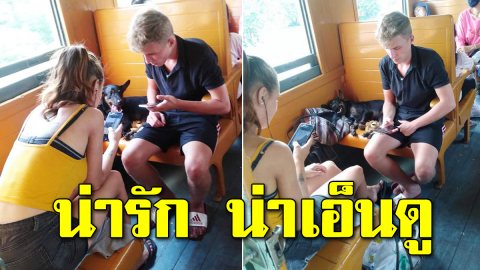 พี่ฝรั่งหอบหมาไทยขึ้นรถไฟ ทั้งป้อนน้ำและเช็ดตัว ในความหน้าร้อนแต่ยังมีความน่ารักจริงๆ