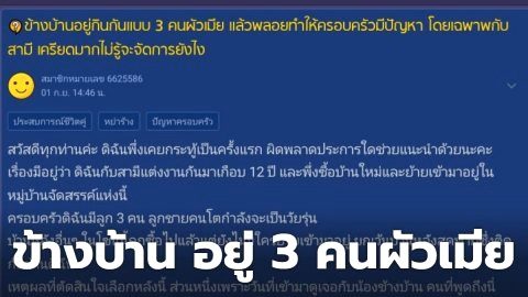 ข้างบ้านอยู่กิน 3 คนผัวเมีย ทำให้ครอบครัวเรามีปัญหา โดยเฉพาะสามี