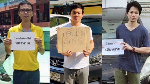หนุ่มๆ แห่ถือป้ายก่อนกลับบ้านวันสงกรานต์ ซูมดูข้อความชัดๆ แห่แชร์สนั่นโซเชียล