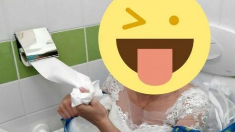 เจ้าสาวหัวคิดเป็นเลิศ ใช้ “กระเป๋า” เพื่อช่วยให้เธอเข้าห้องน้ำเมื่อเธออยู่ในชุดเจ้าสาว
